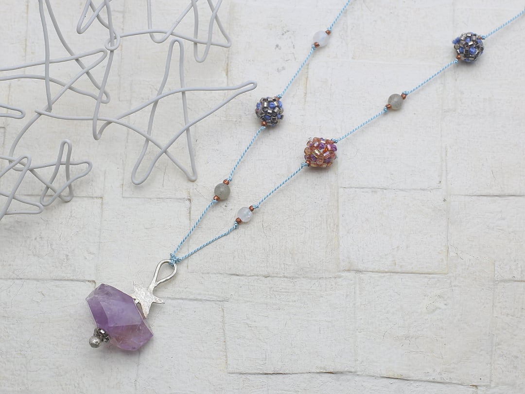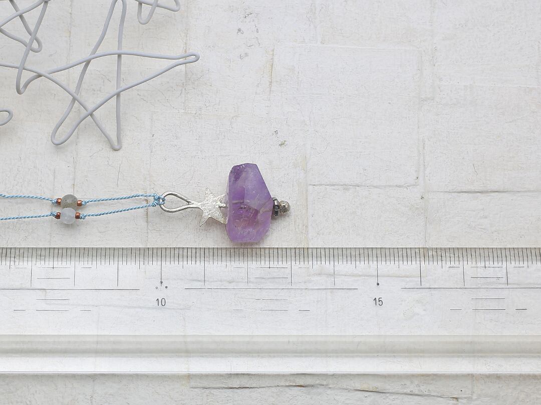 ヘッドはシルバーを星型に切って金槌で槌目を付けたパーツをアメジストに付けました。