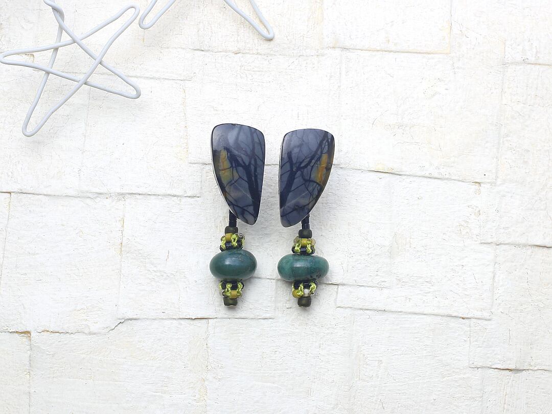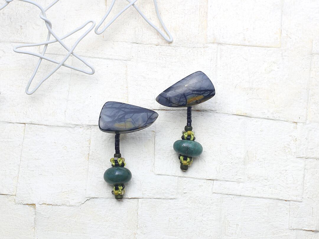 ピカソジャスパー 月明かりのさす深い森 ピアス