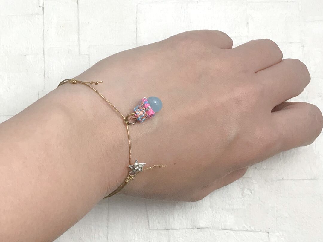 どんぐり シンプルなブレスレット うす水色&ピンク