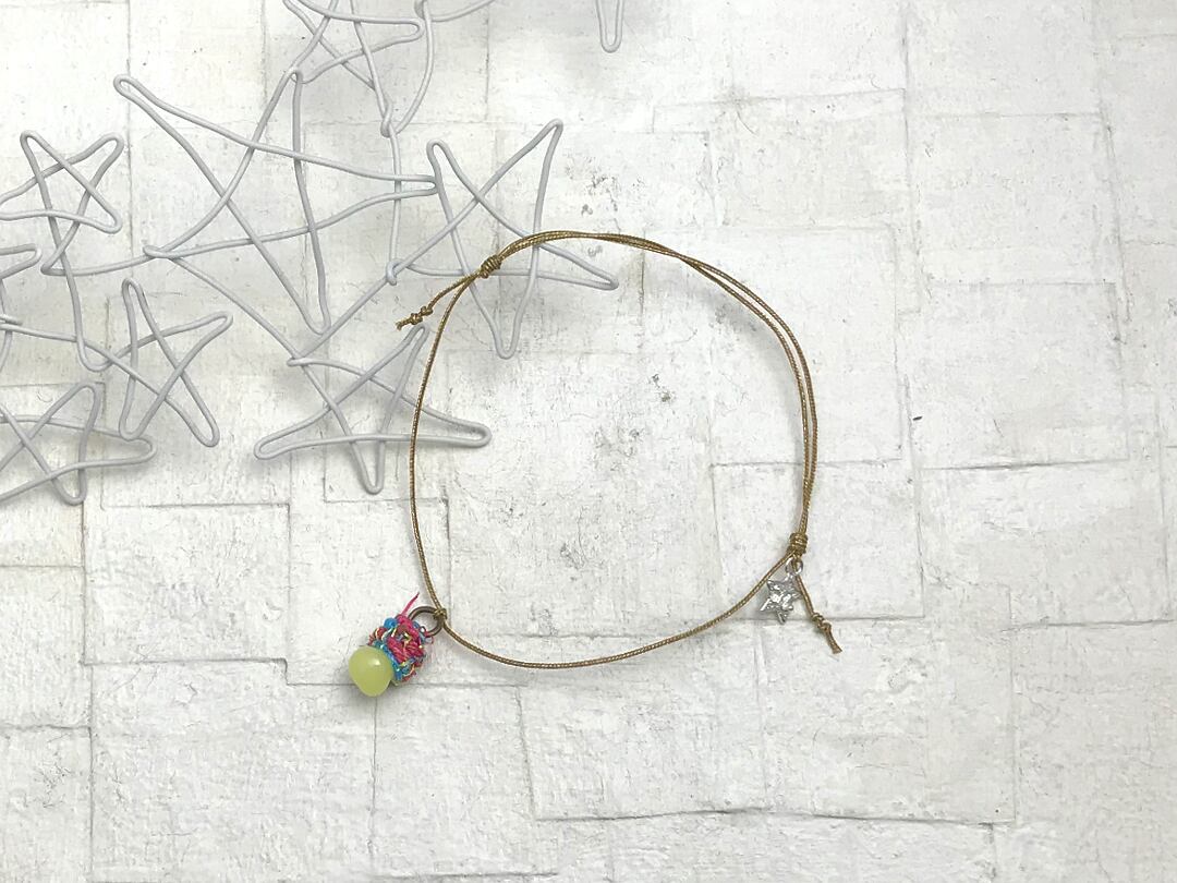 ブレスレットの両サイドにある結び目とナイロンコードを引くと長さ調節ができます。