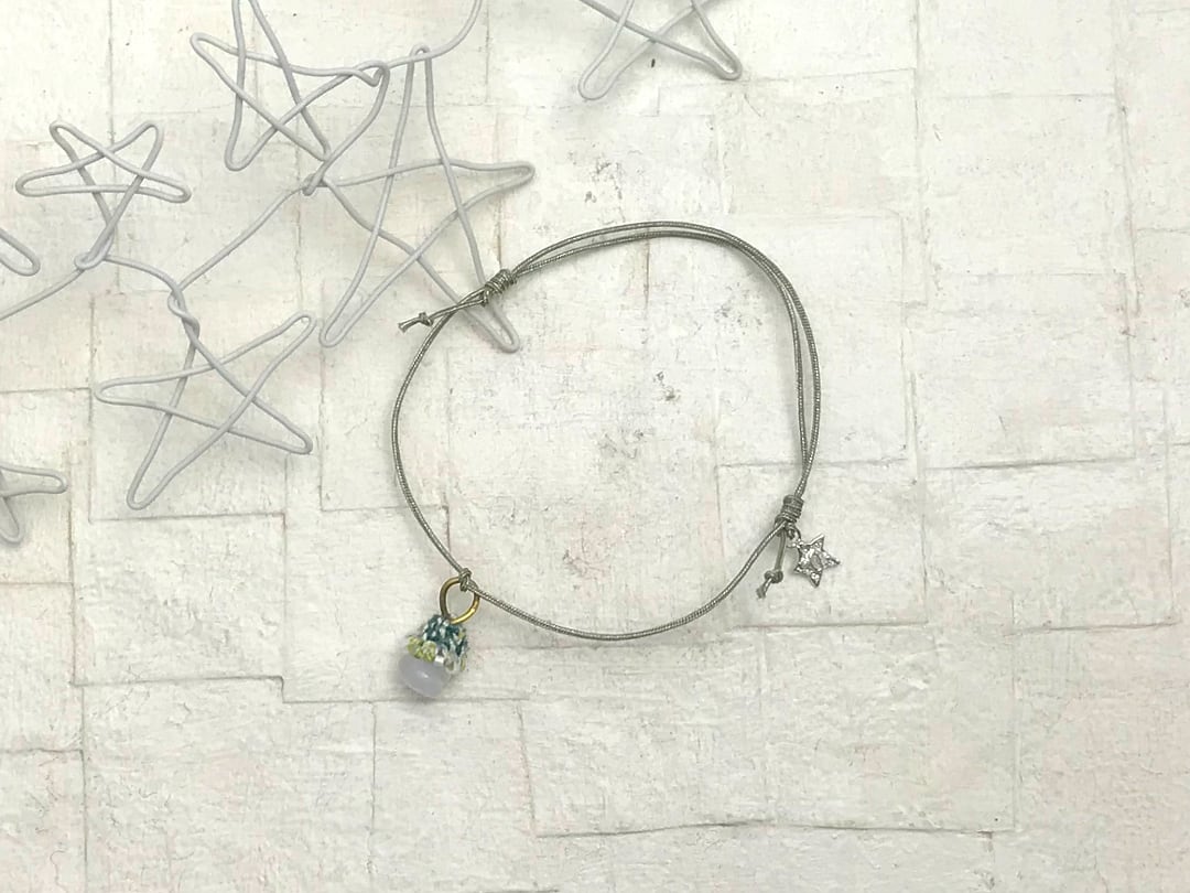 素材:ガラス、シルバー、真鍮、デリカビーズ、綿糸、麻糸、ナイロンコード(ブレスレット本体 シルバーカラー)