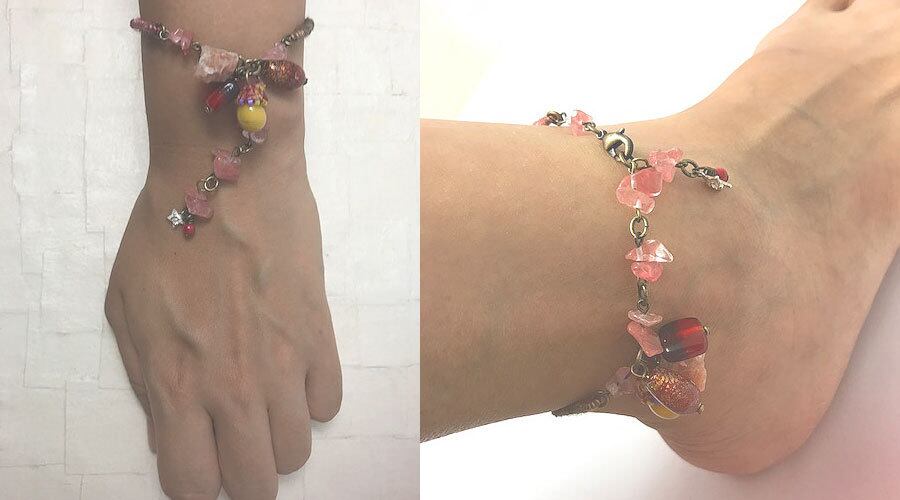 ブレスレットとしてもアンクレットとしても使って頂けるように作りました。