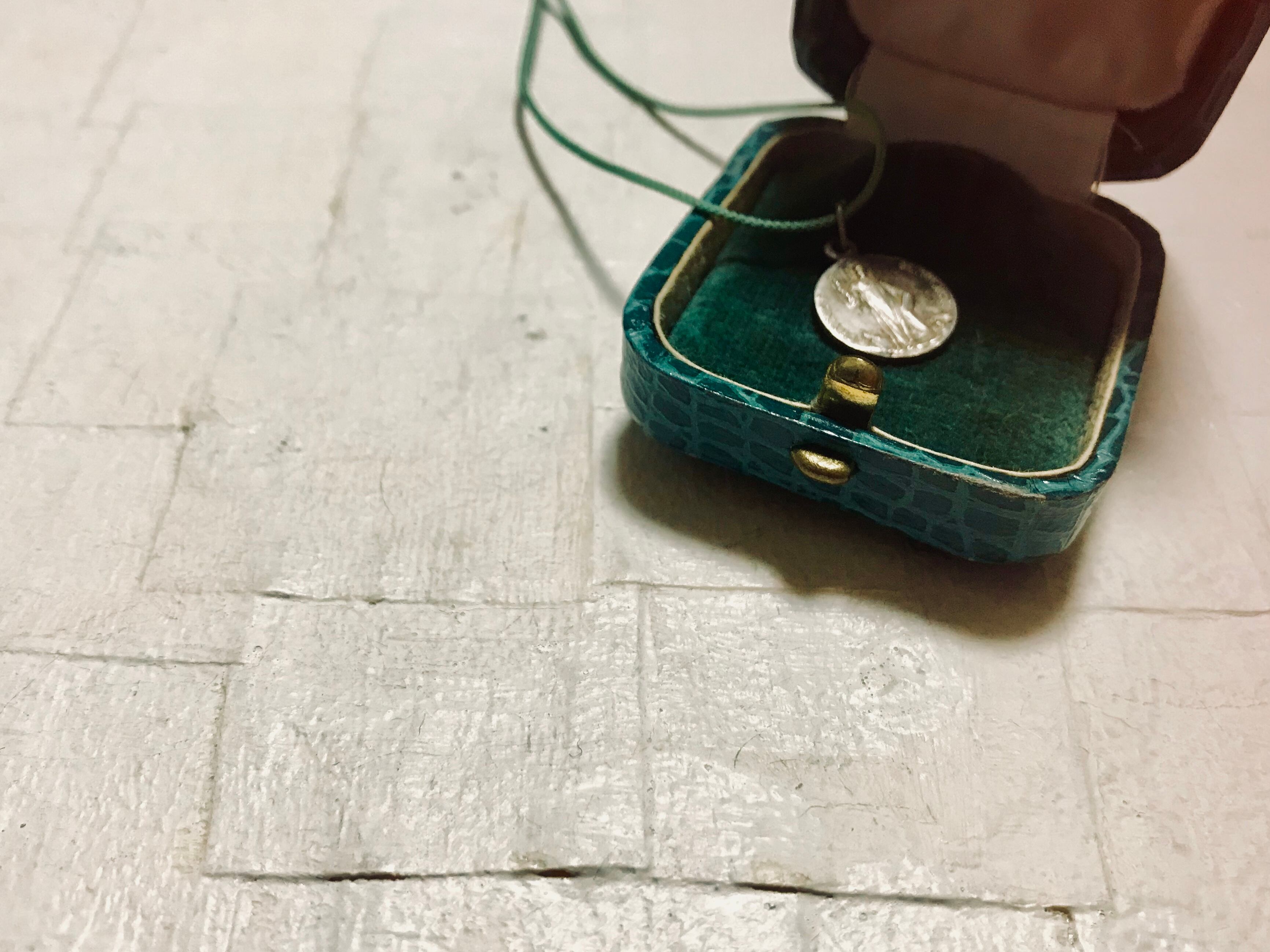 シルバーのメダイに合わせてグリーンのコードでペンダントにしました。