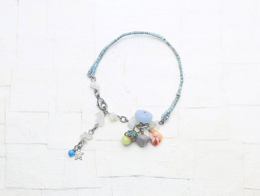 ブレスレットとしてもアンクレットとしても使って頂けるように作りました。