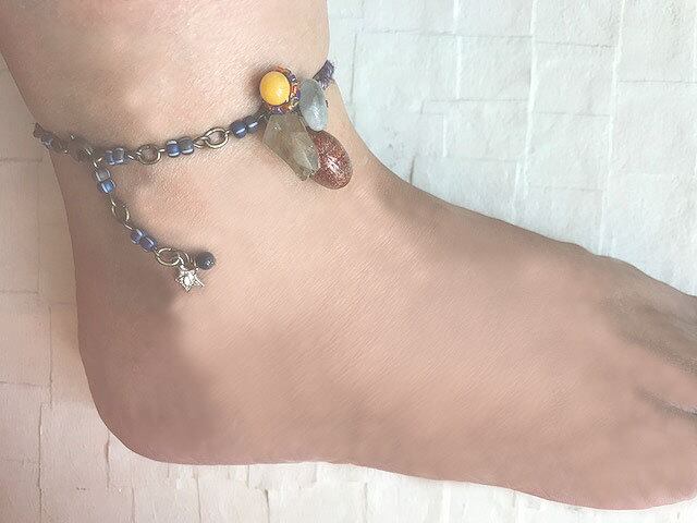 ブレスレットとしてもアンクレットとしても使って頂けるように作りました。