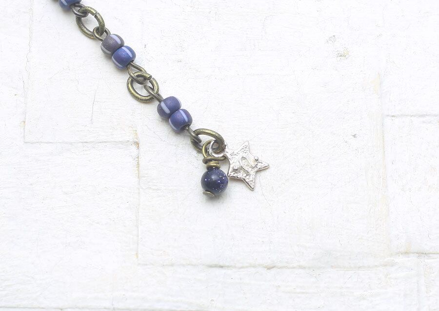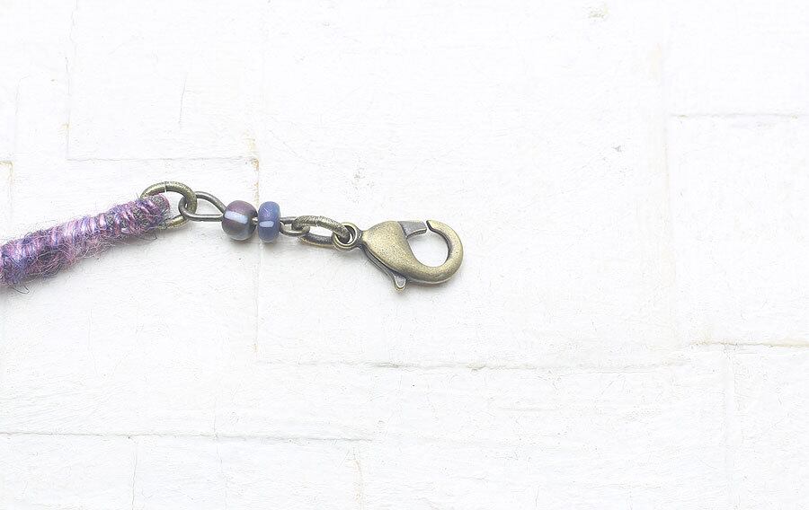 ※アジャスターになる白い線が入ったパープル系のシードビーズの連なり部分にナスカンを留めて頂きますとお好みの長さに調節が出来ます。十分な長さがありますのでアンクレットとしてお使い頂くことも可能です。