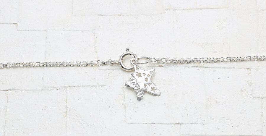 ロッククリスタルの枠はシルバーで星を付けたりして作りました。デザインのアクセントとしてクリアなダブルポイントクリスタルとところどころブラックの斑が入った様なダブルポイントクリスタルを使いました。